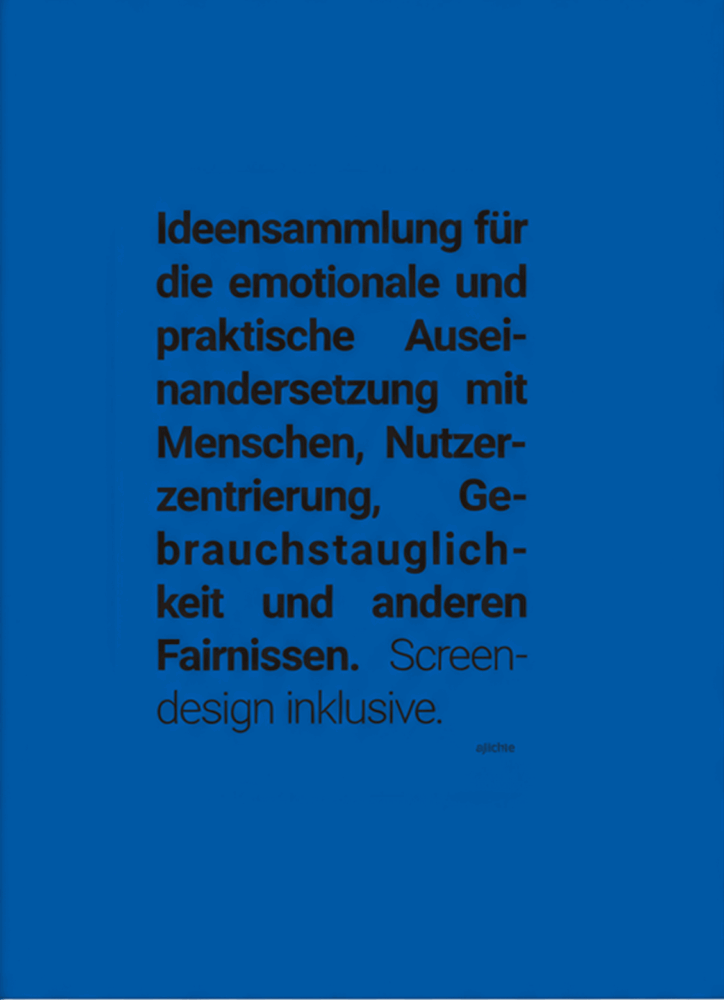 In meinen Vorlesungen und Seminaren an der IU.org und bei cimdata habe ich in den letzten Jahren einiges an Wissen und Wissensdurst vermittelt. So hoffe ich jedenfalls. Nach weit über 25 Jahren Screendesign und reichlich Erfahrung in Projekten sah ich mich veranlasst endlich mal alles – oder besser gesagt einiges neben den hunderten von Folien – schriftlich niederzulegen. Ich referenziere dabei klar auf Nielsen & Norman, ohne deren Weisheit die ganze Digital-Produkt-Design Branche oft hilflos da stünde. Es gibt viele Bücher und Leitfäden und Tutorials im Web – auch ich nutze sie – oft zeigen diese aber nur ein Teil des Ganzen. Ich versuche hier in hoffentlich schnell erfassbarer Form Beispiele und konkrete Anleitung zu geben, wie man an die Praxis herangeht. Ziel ist es dabei, jungen Designern klar zu vermitteln, dass sie von Anfang an mehr für ihre Rolle tun müssen, um nicht als Anmaler von schlechten Konzepten zu enden. Design war und ist immer mehr als nur Farbe, Form und Typografie. Diese Grundelemente gilt es zu beherrschen – wichtiger aber noch ist das Verständnis für den Empfänger und Nutzer dieser Elemente, die sich in Summe in allen Interfaces, die wir täglich bedienen versammeln. Interaktive Medien fordern seit langen schonen einen neuen Typus von Designer, der Print beherrschen sollte, aber bei Screen immer noch bereit sein muss Neues zu Lernen: vom User.